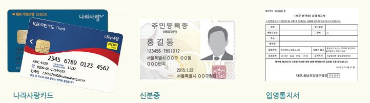 - 신분증 : 주민등록증, 운전면허증, 여권 중 하나를 선택하세요. 신분증은 입소 시 반드시 필요합니다.