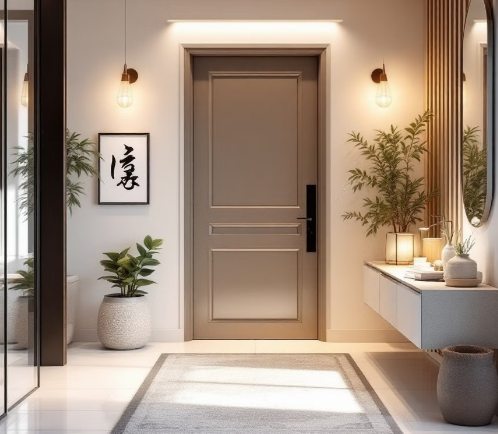 현관문 정면에 거울을 두지 않도록 하여 들어오는 기운이 반사되어 나가지 않도록 합니다.