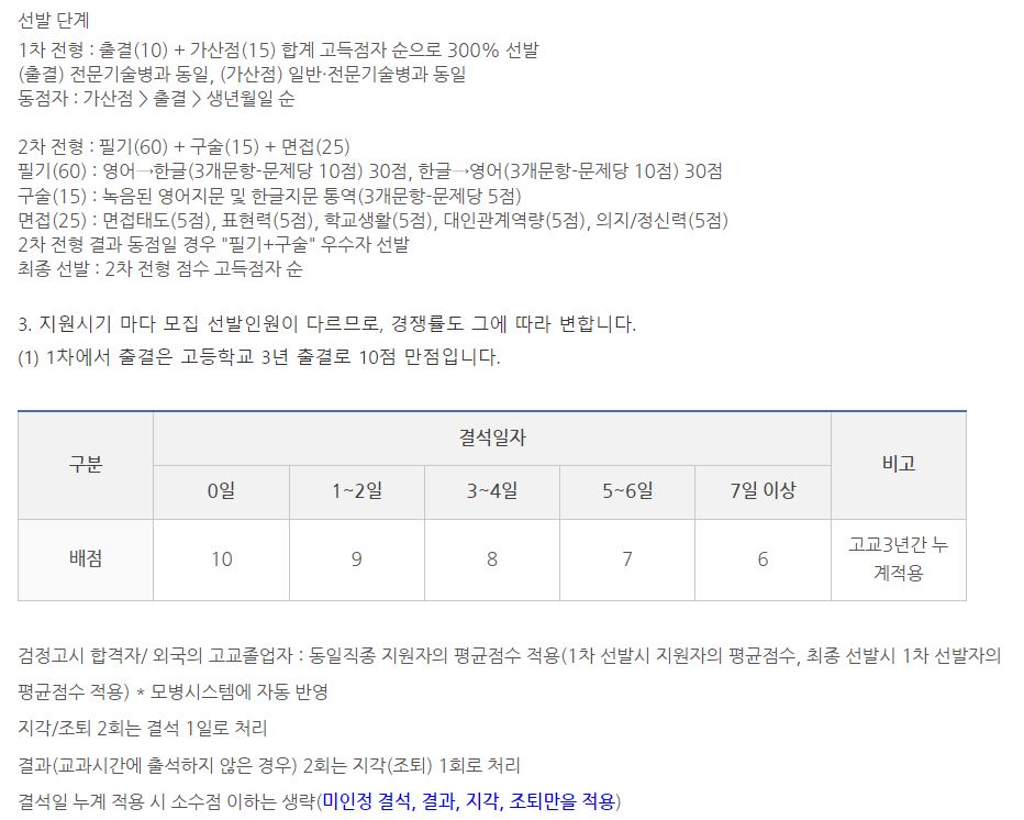 - 자격증: 관련 자격증 보유 시 가산점 (병무청 홈페이지 참조)
