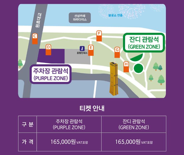 - 가격: 165,000원 (주차장 관람석, 잔디 관람석 동일)