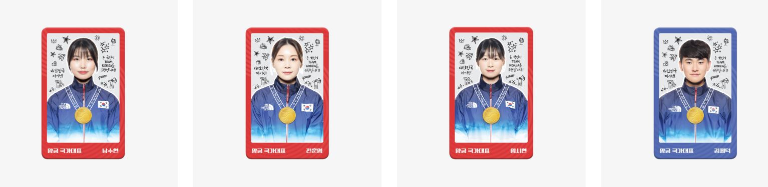 황선우, 김제덕, 오상욱 등 유명 선수들뿐만 아니라 브레이킹의 김홍열, 세단뛰기 김장우, 역도 김수현 선수의 골드카드도 포함되어 있습니다.