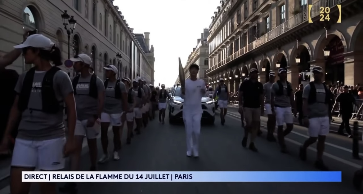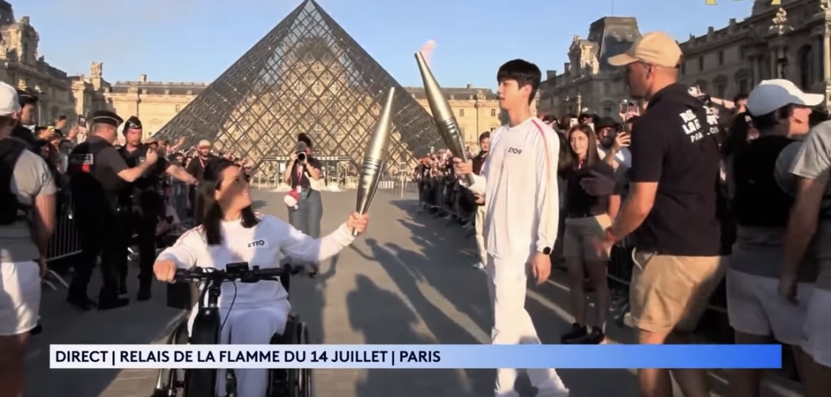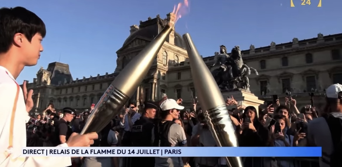 진은 파리의 상징적인 장소인 루브르 박물관 앞에서 성화봉송을 했습니다.